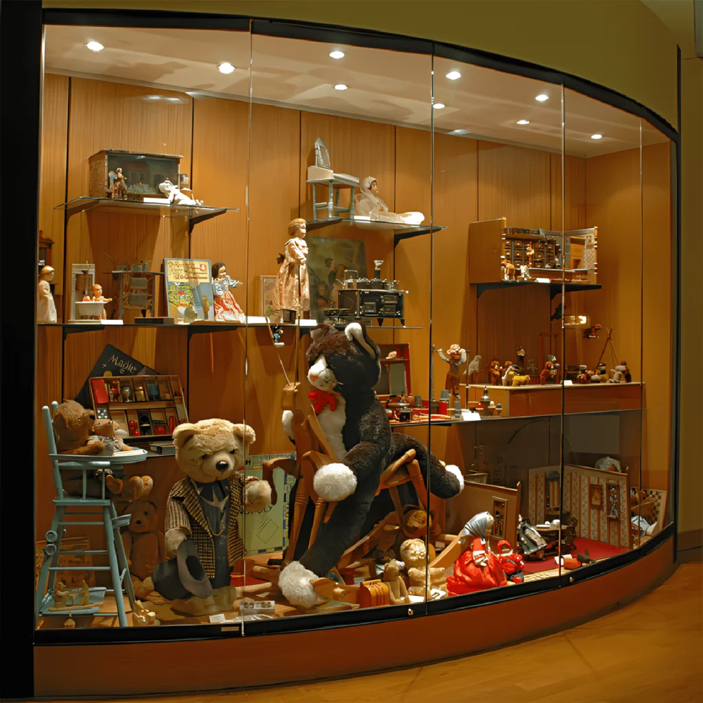 Nous partons donc les 4 avec mon mari, ma sœur et ma mère, et on rejoint un couple d’amis. On parcourt les trois étages du musée, où on peut voir des peluches, des poupées, des voitures, des jeux de société, des jouets artisanaux, des jouets en tôle, des petits soldats de plomb, des marionnettes, des automates… Ma mère était ravie de revoir les jouets de son enfance. On pouvait aussi manipuler plusieurs jeux. Il y avait aussi une exposition temporaire sur les Playmobils.