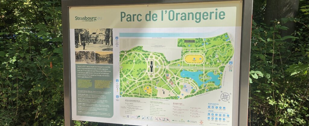 Après avoir fait le plein de savoirs, on part se détendre au Parc de l’Orangerie. Un parc qui existe depuis 1692, et qui est classé au titre des monuments historiques depuis 1993. 26 hectares sur lesquels cohabitent 3000 arbres, des fleurs, des aires de jeu, des statues, un kiosque, un lac, des cascades, un jet d’eau…